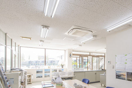 環境対策の一環として、本社の照明をLED化し、省エネルギー化を実現しました。LED照明の導入により電力消費を削減し、CO2排出量の抑制にも貢献。社内全体で省エネ意識を高めることで、企業として環境負荷の軽減に積極的に取り組んでいます。